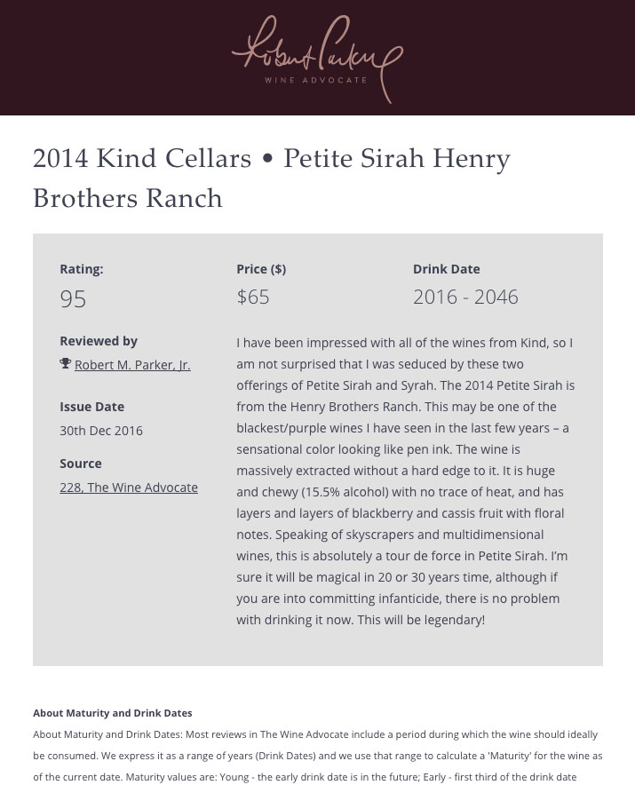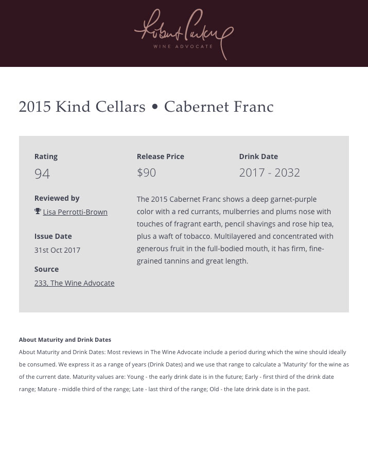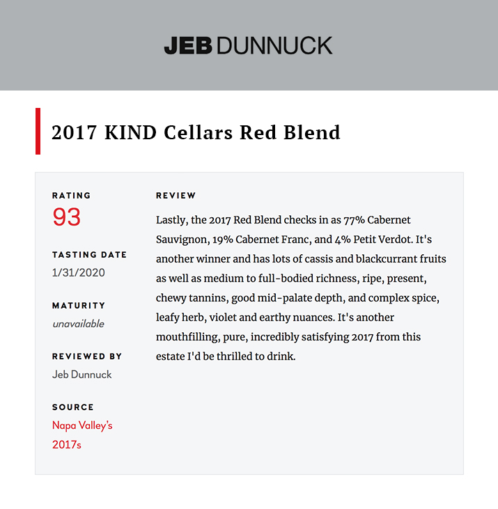 96 JD 2017 KIND Cellars Cabernet Sauvignon Reserve, Lewelling Ranch
